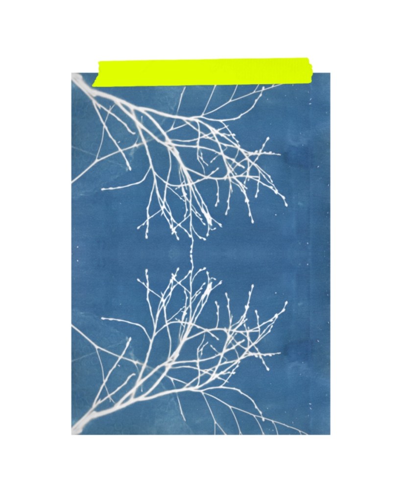 Cyanotype is a 19th-century process invented by Herschel that creates striking blue prints using light-sensitive chemicals. By placing objects or negatives on treated paper and exposing it to sunlight, the exposed areas turn deep blue while the covered parts remain white. For this series, I used cyanotype as a new printmaking technique to explore color.