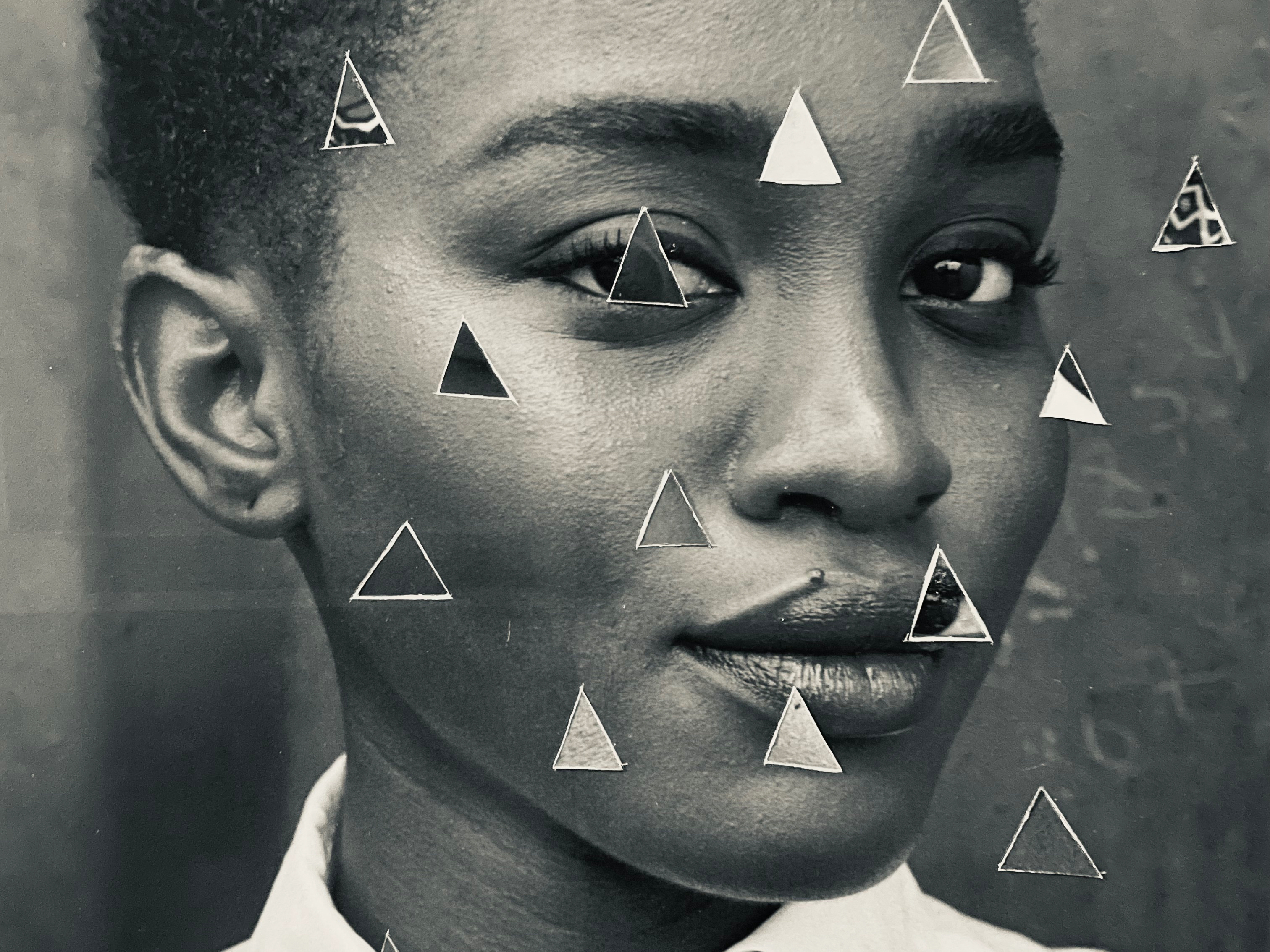 In the third version, I used the same technique with small triangles, creating a playful effect. The eye remained visible, allowing the subject to maintain a strong, direct gaze.